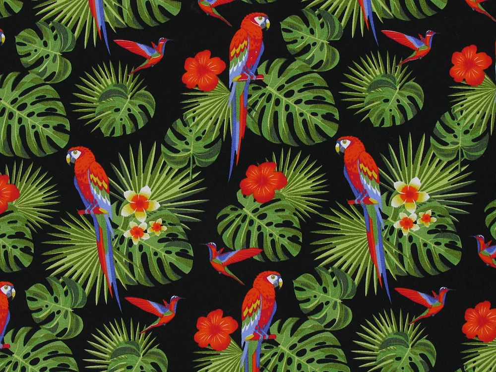 Amazonian Parrot Cotton Print, Black£5.50 per metre