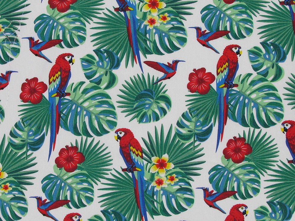 Amazonian Parrot Cotton Print, White