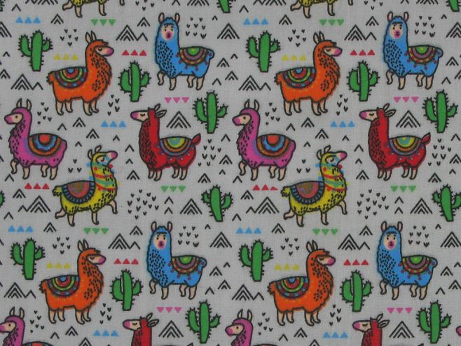 Cactus Llama Polycotton Print, Silver