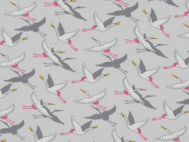 Flying Crane Loopback Cotton Jersey, Light Grey£10.00 per metre