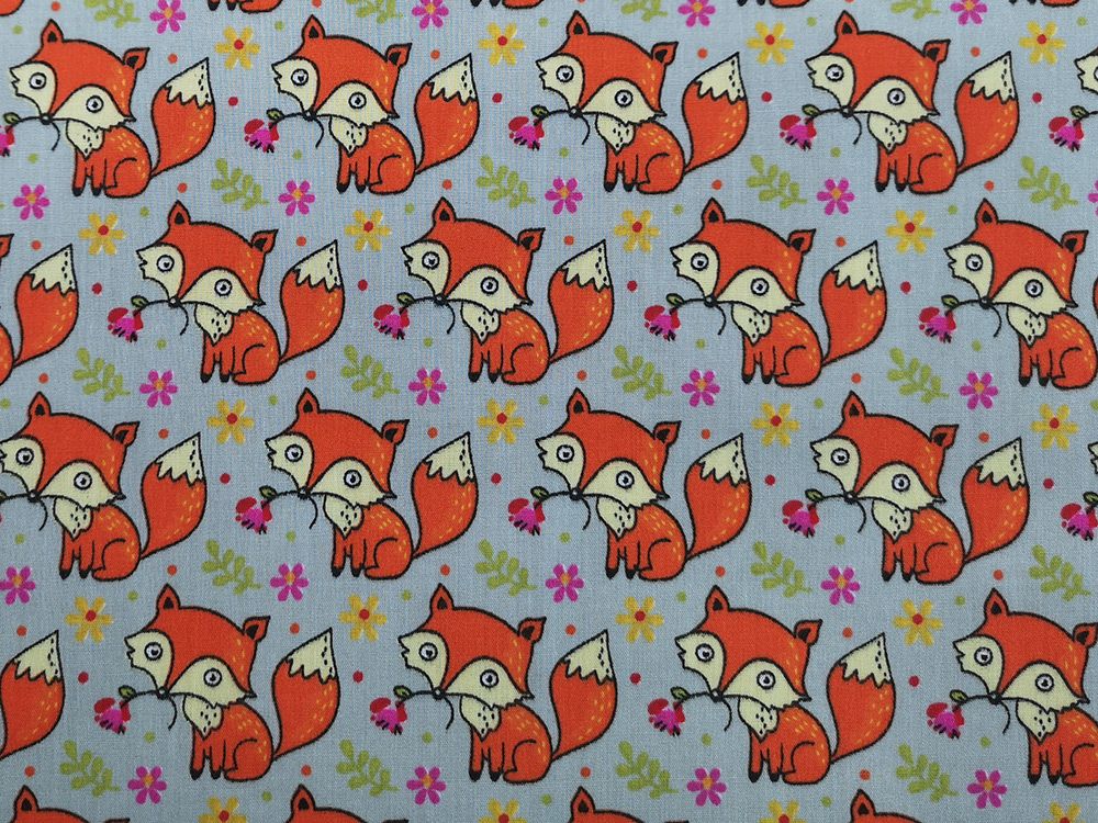 Foxes Polycotton Print, Silver