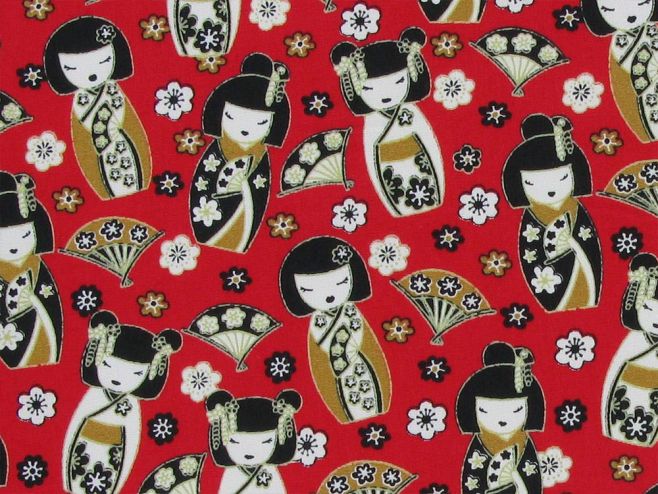 Geisha Fan Cotton Poplin Print, Red