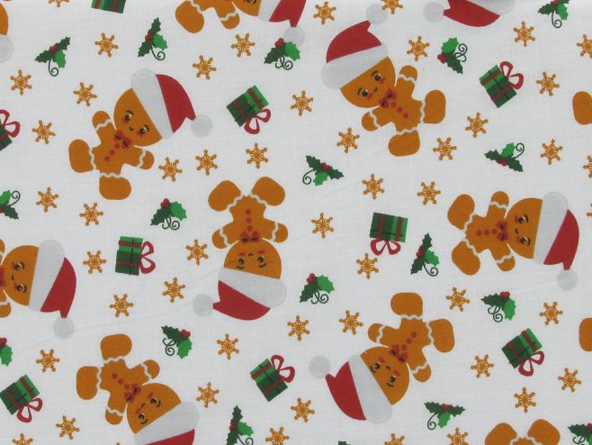 Gingerbread Santa Presents Polycotton Print