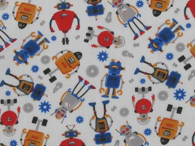 Roaming Robots Polycotton Print, White£2.75 per metre
