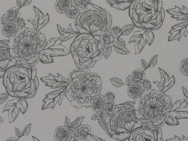 Rose Flower Polycotton, Print Grey£2.50 per metre
