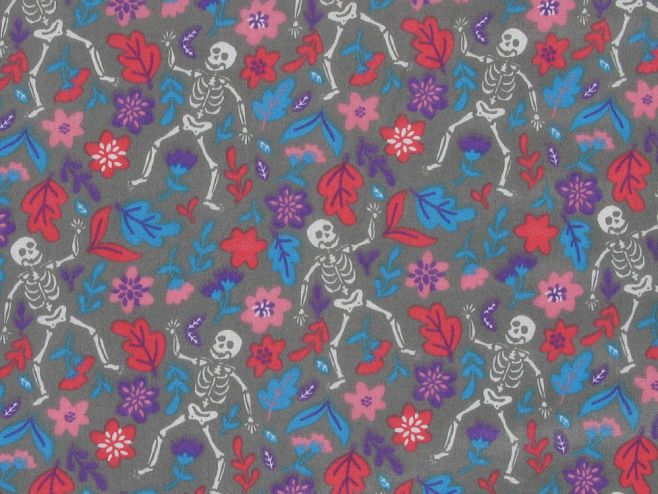 Skeleton Bloom Polycotton Print, Grey